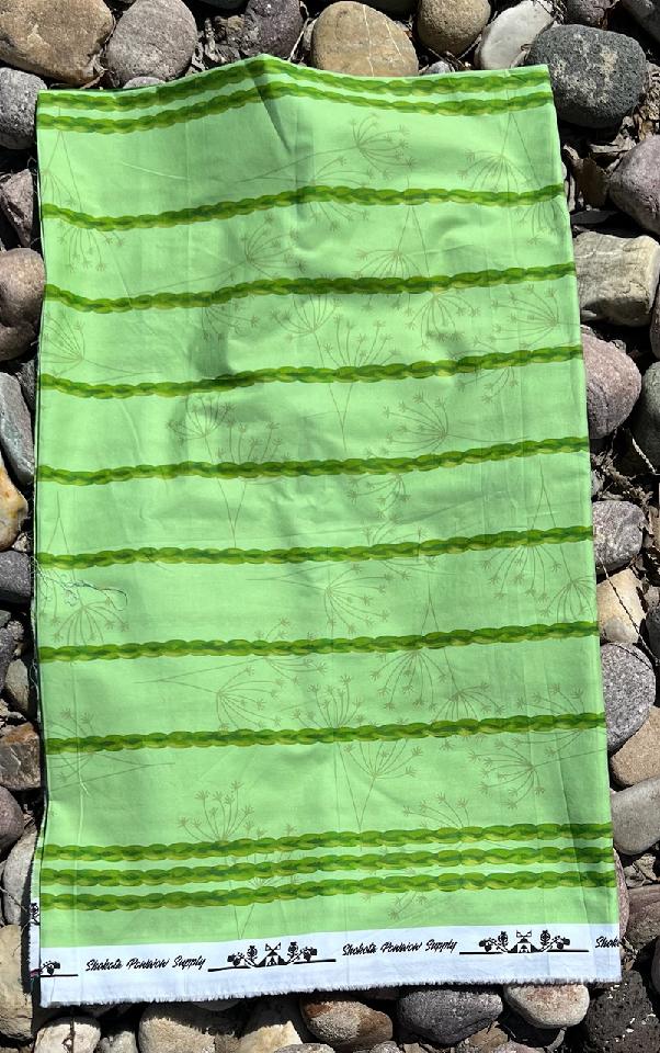 100% cotton poplin. 58" wide, Sold by the yard. Paula Top Sky Houtz (Shoshone-Bannock Chippewa Cree) designed this sweetgrass fabric exclusively for Shokota Pow-wow Supply.