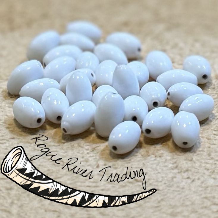 We are excited to offer these historically accurate, reproduction "barley corn" beads. These beads have become extremely hard to find and we are happy to be able to offer these beautiful reproduction beads. Each bead is handmade, just like the old way.